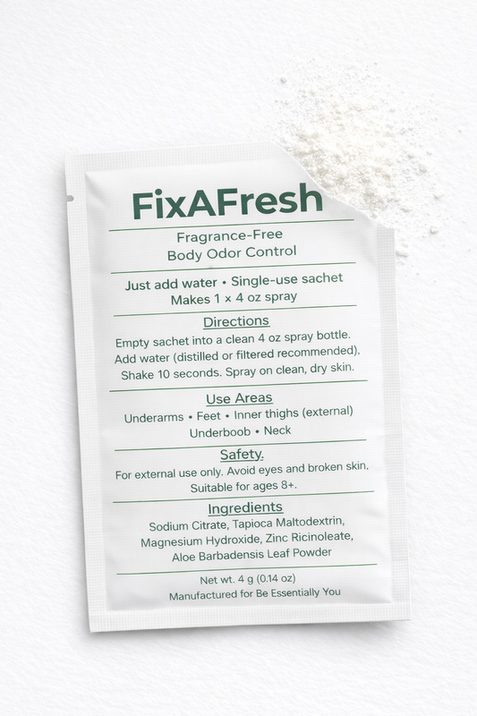 FixAFresh™ Travel Body Care Kit – 3 Sachets + Refillable Spray Bottle